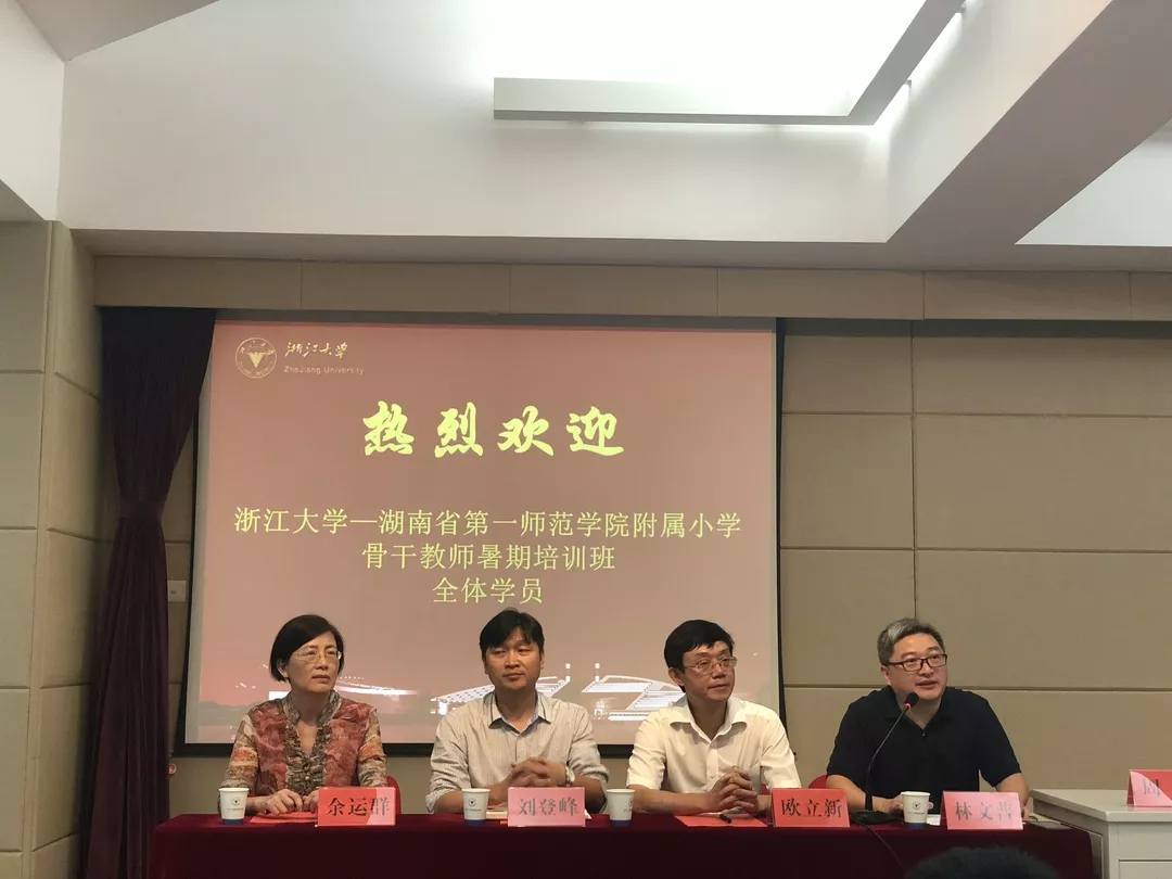 “毕竟西湖六月中,风光不与四时同。”在这迷人的农历六月(公历7月16日),我校一行18名教师在一师基础教育发展部欧立新主任的组织下,在我校教研室邹老师的带领下,来到素有“东方剑桥”之称的浙江大学变身为学生,进行为期一周的暑期培训。同行的还有中南大学附小、一师一附小及与附小合作办学的4所小学的部分教师。