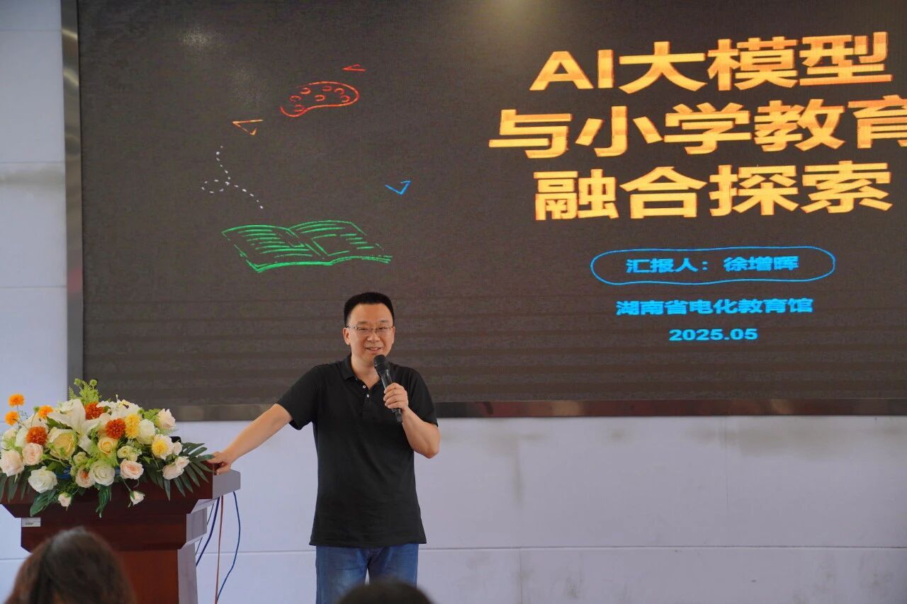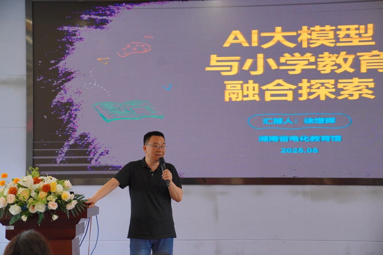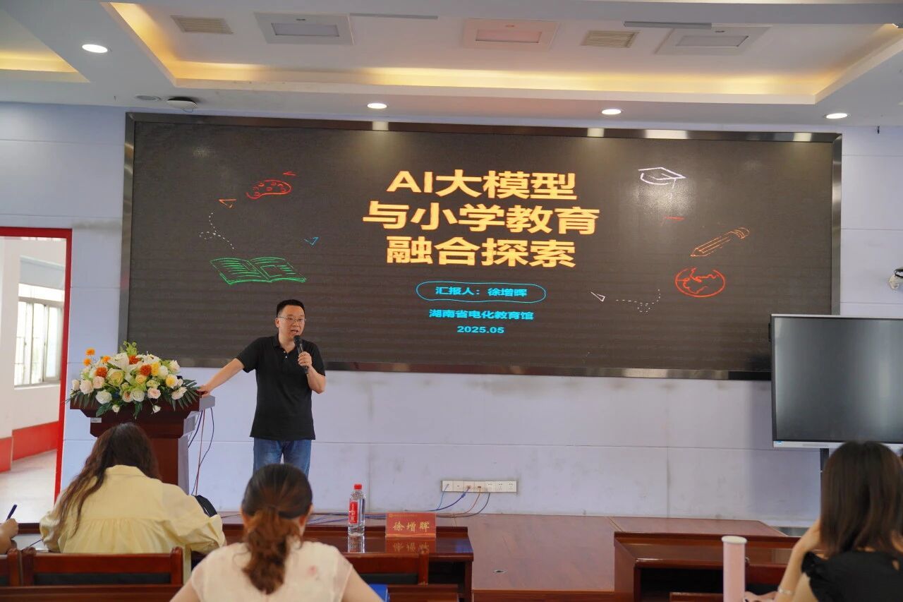 5月19日下午,湖南第一师范学院第二附属小学迎来了一场充满科技与教育交融的智慧盛宴。湖南省电化教育馆研究室副主任、高级教师徐增晖亲临我校,为全体教师带来了一场题为《AI大模型与小学教育融合探索》的专题讲座,点燃了教师们对于未来教育新图景的无限遐想。