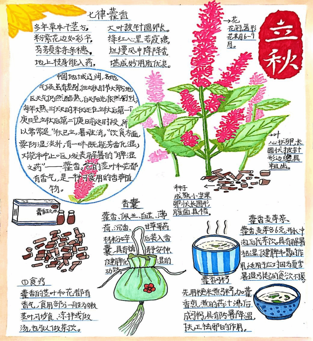我看着手中的空药瓶上“藿香”两字,突然对这种植物有了兴趣,赶紧上网查阅资料。原来藿香有“夏日良药”之誉,其味辛,性温,具有芳香化浊、中和止吐、发表解暑的功效。它的茎叶和花都有香气,是一种可食用的香草植物。藿香的嫩茎叶可以炒着吃、凉拌或做汤,也可以做茶饮,也可以入药。藿香原来有这么多用处,我喜欢藿香这种植物。