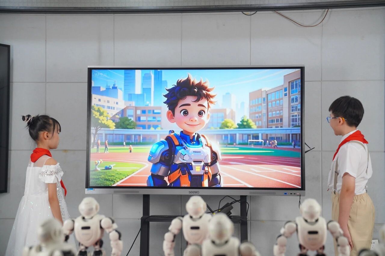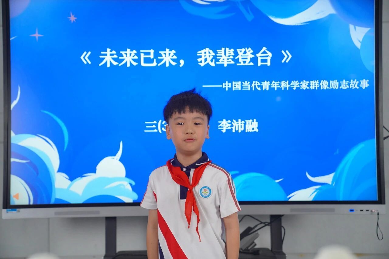 在“AI对话”环节,人工智能助手“小未”与同学们互动畅想未来,描绘出一幅智能、绿色、和谐的美好图景。随后,一师二附小李沛融同学分享了青年科学家励志故事,激发大家以科学精神报效祖国的热情。