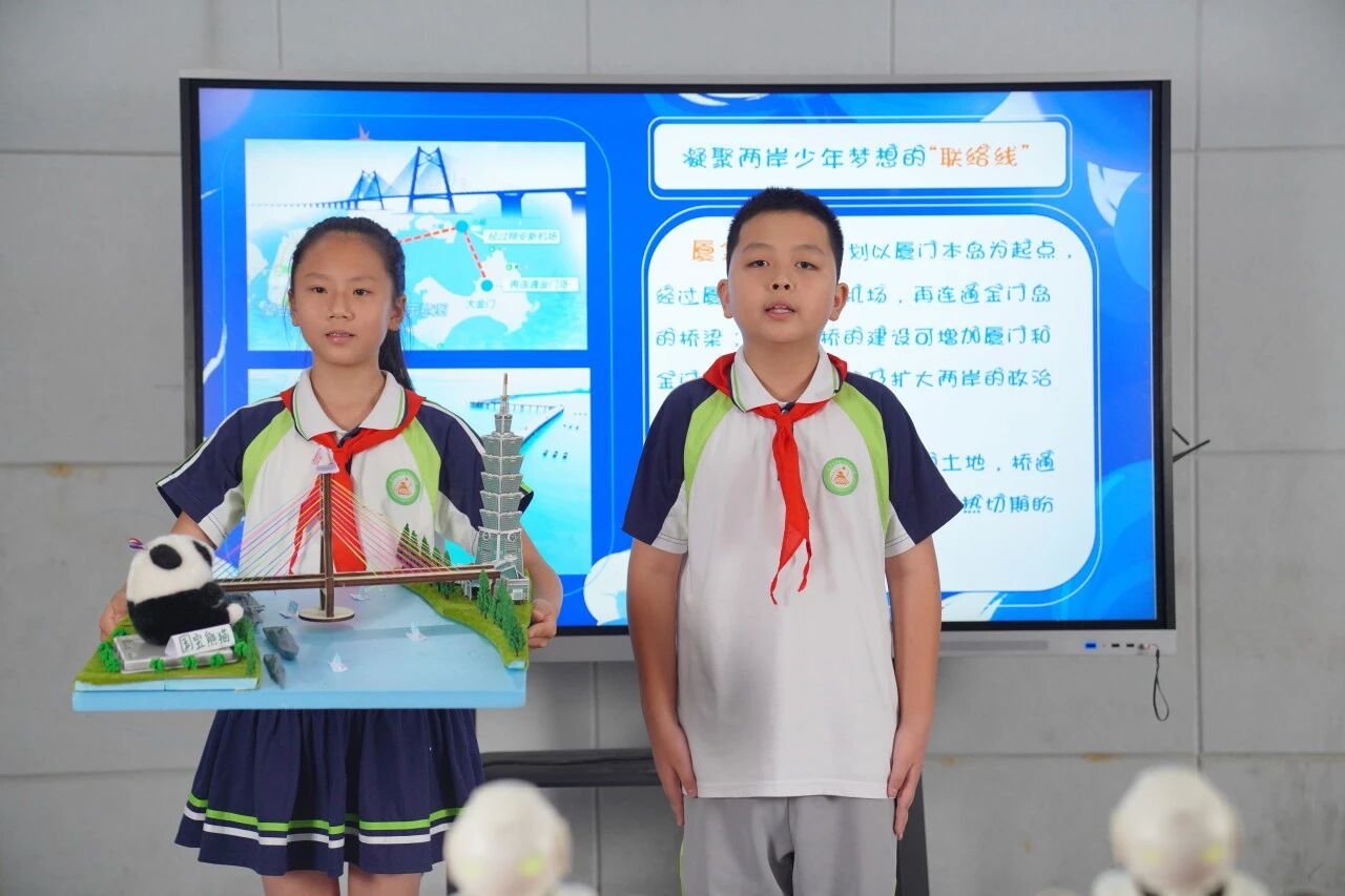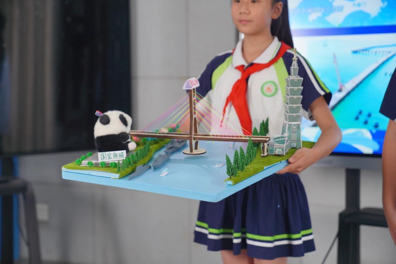 创意模型展示环节中,营盘路小学贺晨钊同学通过“未来两岸共同家园”模型,表达了对两岸融合发展的美好愿景。