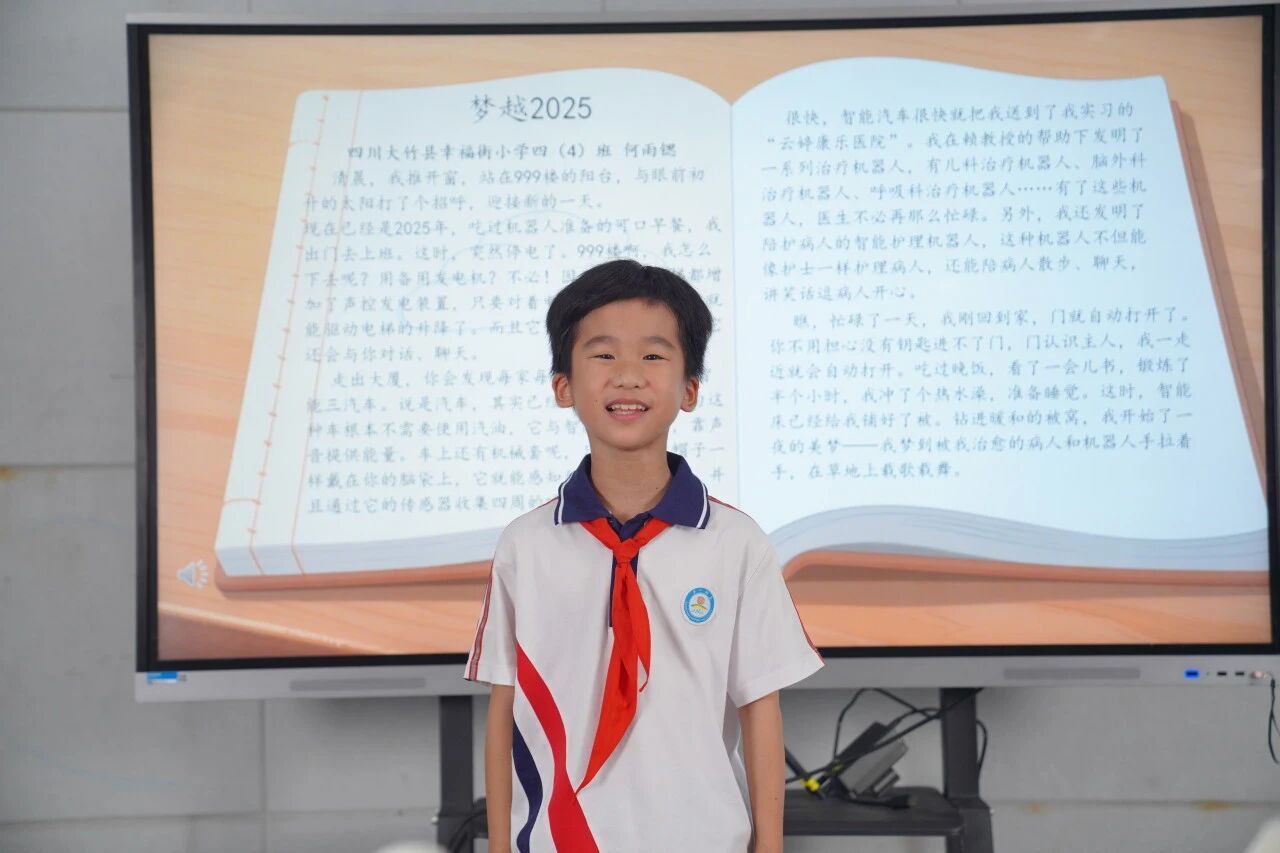 接下来,典礼进入“时光胶囊”环节,一师二附小殷颢伦同学朗读了2014年的作文《梦越2025》,让在场师生深切感受到科技如何将昔日的梦想变为今天的现实。