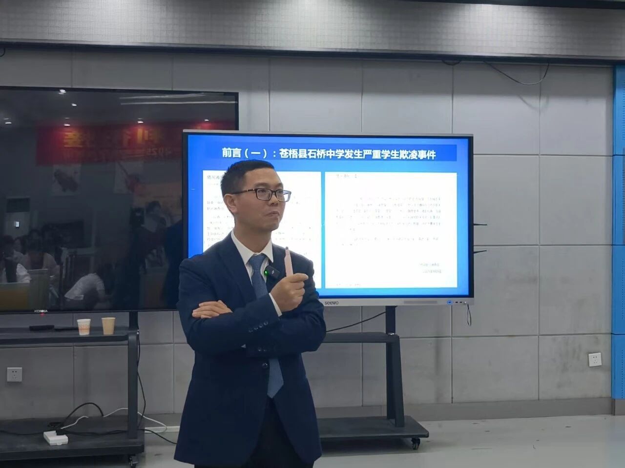 伍律师以近期社会关注的“苍梧县石桥中学学生欺凌事件”为切入点,深入剖析了学生欺凌的隐蔽性、危害性以及防治工作的紧迫性。他指出,防治学生欺凌不仅是落实《未成年人保护法》等法律法规的必然要求,更是守护学生身心健康、构建和谐校园的重要保障。