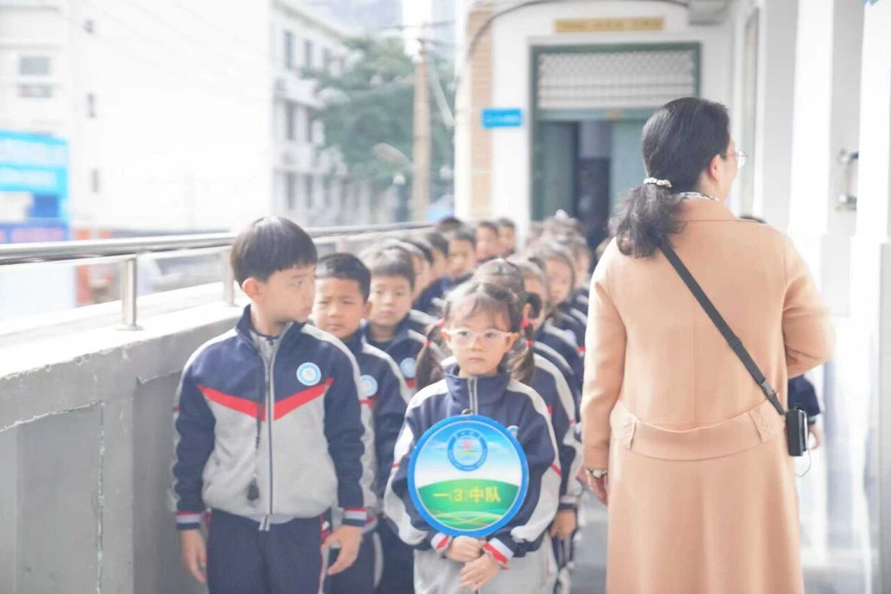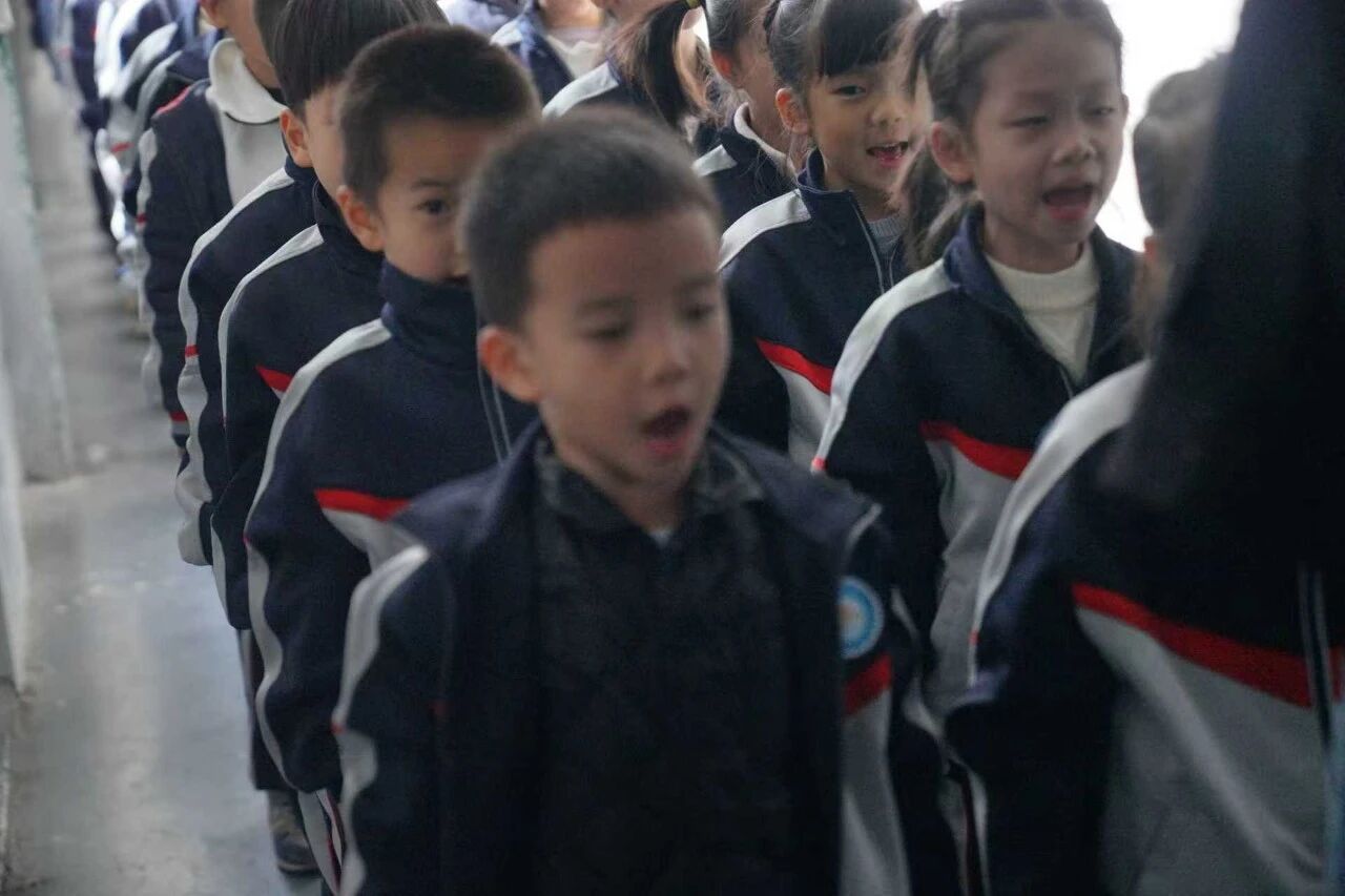 “现在我们来玩‘开火车’游戏。”花朵朵当火车头,山青青在中间,小乐当车尾。三人沿着地砖线慢慢前进,花朵朵轻声数着“一二一”,让后面的同学能跟上节奏。连走廊里的小麻雀都跟着他们“一二一”地跳。