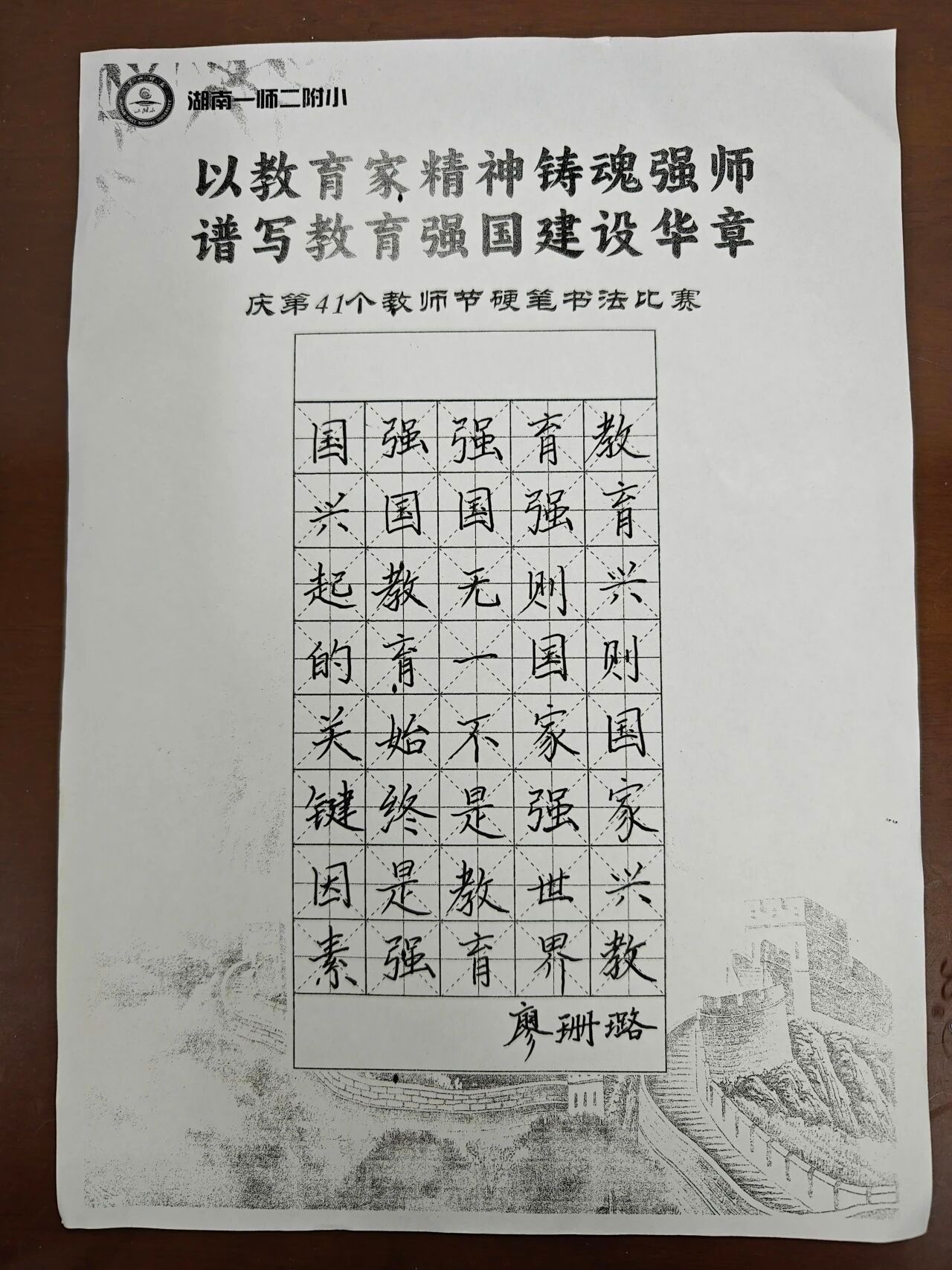 长期以来,湖南一师二附小始终高度重视教师队伍建设和校园文化培育。此次由工会主办的硬笔书法比赛,不仅是教师节系列活动的重要组成部分,更在“书香满园”的氛围中彰显了教师群体的文化追求与精神风采,进一步凝聚了团队合力,厚植了校园底蕴。