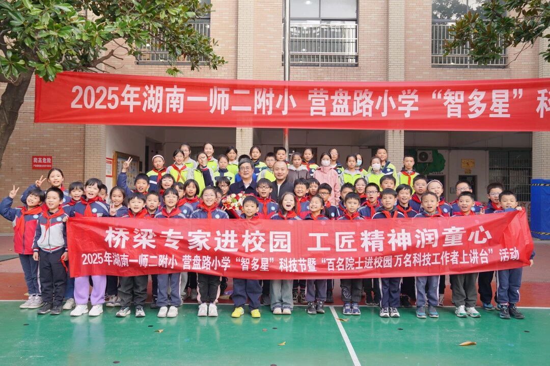 11月27日下午,湖南一师二附小营盘路校区的多媒体教室里,迎来了一位特别的“老师”——我国著名桥梁专家、矮寨大桥设计师彭立教授。作为学校“智多星”科技节的重要活动之一,彭教授以“超级工程的中国力量”为主题,为湖南一师二附小和营盘路小学的孩子们带来了一场生动而深刻的科普讲座。