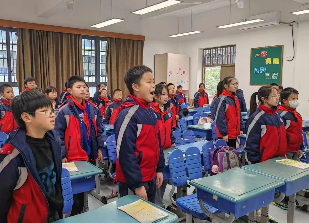 2025年12月22日清晨,在庄严肃穆的国歌声中,我校全体师生通过线上直播平台同步举行“寻红色初心,做时代新苗”纪念毛泽东同志诞辰主题升旗仪式。本次活动由三(1)中队承办,通过主题演讲、故事讲述、诗词朗诵、手势舞表演等多种形式,深切缅怀伟大领袖毛泽东同志的丰功伟绩,激励全体师生传承红色基因,汲取奋进力量。