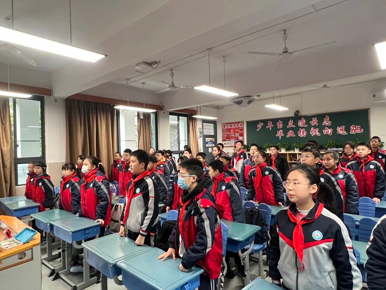 仪式的高潮部分,欧阳吉灏等四位同学共同讲述了《毛主席与附小的故事》。他们回顾了毛泽东同志在附小担任主事期间推行教育革新、传播进步思想、关心工农子弟、倡导劳动教育的办学实践,特别提到毛主席曾写下“世界是我们的,做事要大家来”的楹联,至今仍是我校精神血脉的重要组成部分。1921年,毛泽东同志正是从附小出发,赴上海参加中共一大,从此开启了中国革命的崭新篇章。这段厚重的校史让全体师生深感自豪,更觉责任在肩。