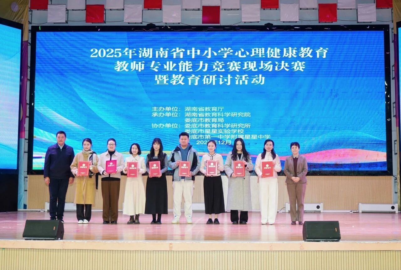12月4日至5日,由湖南省教育厅主办,湖南省教育科学研究院与娄底市教育局共同承办的“2025年湖南省中小学心理健康教育教师专业能力竞赛现场决赛暨教育研讨活动”在娄底市隆重举行。本次竞赛涵盖“课程教学”和“辅导案例”两大核心内容,旨在全面考察教师的课程设计、课堂实施、心理辅导及现场答辩等综合能力。