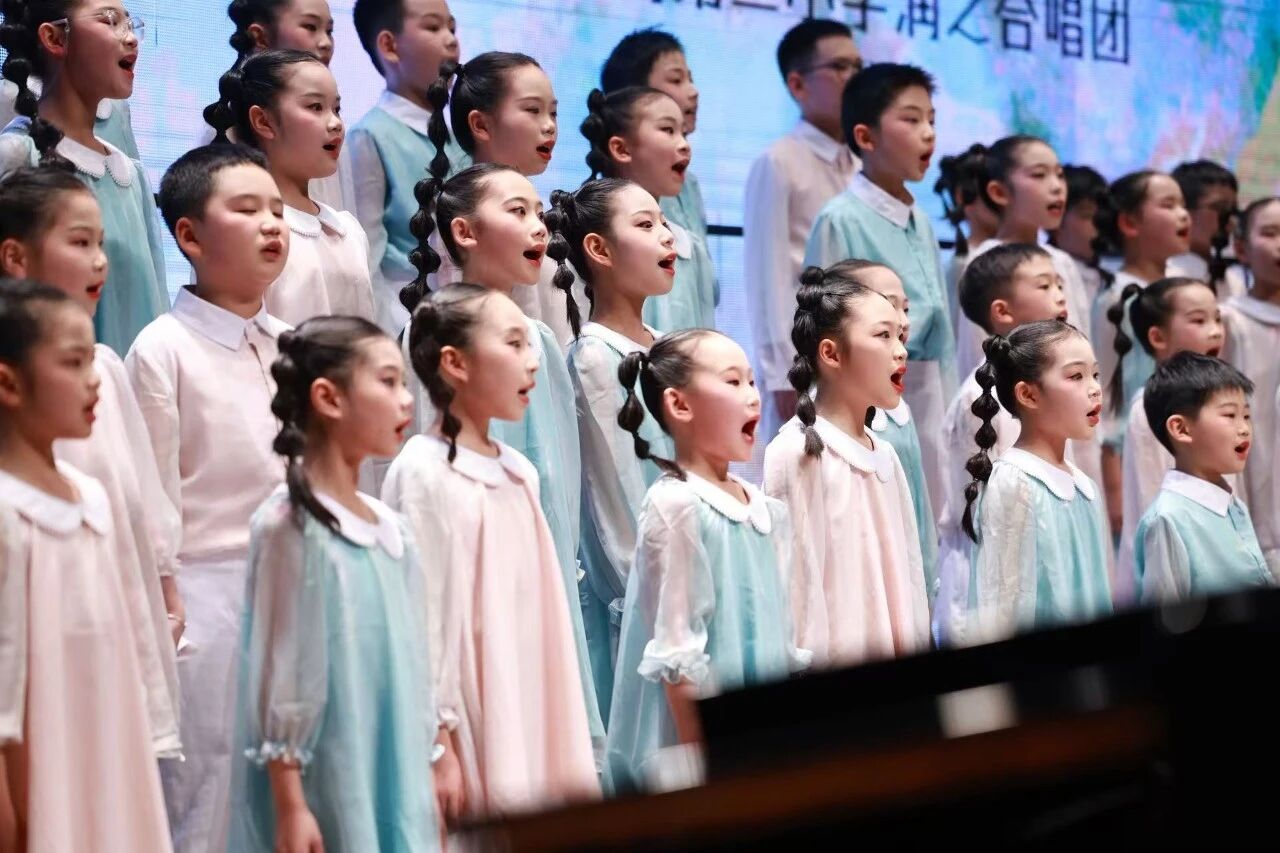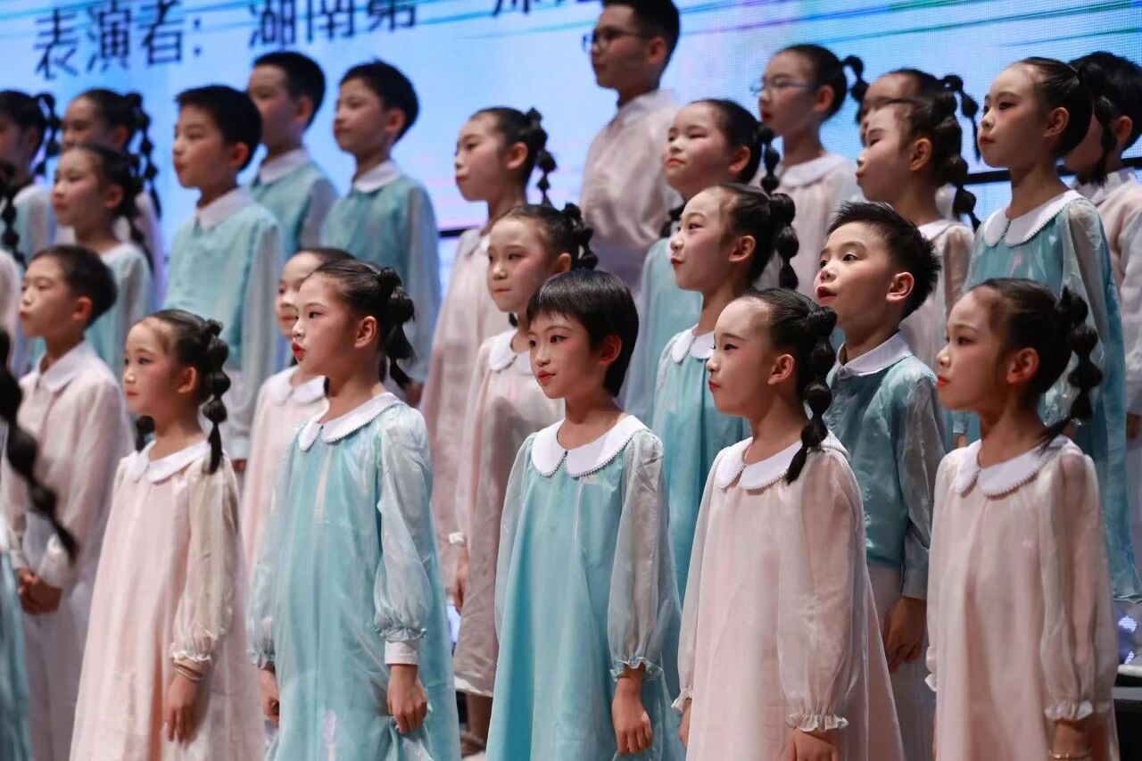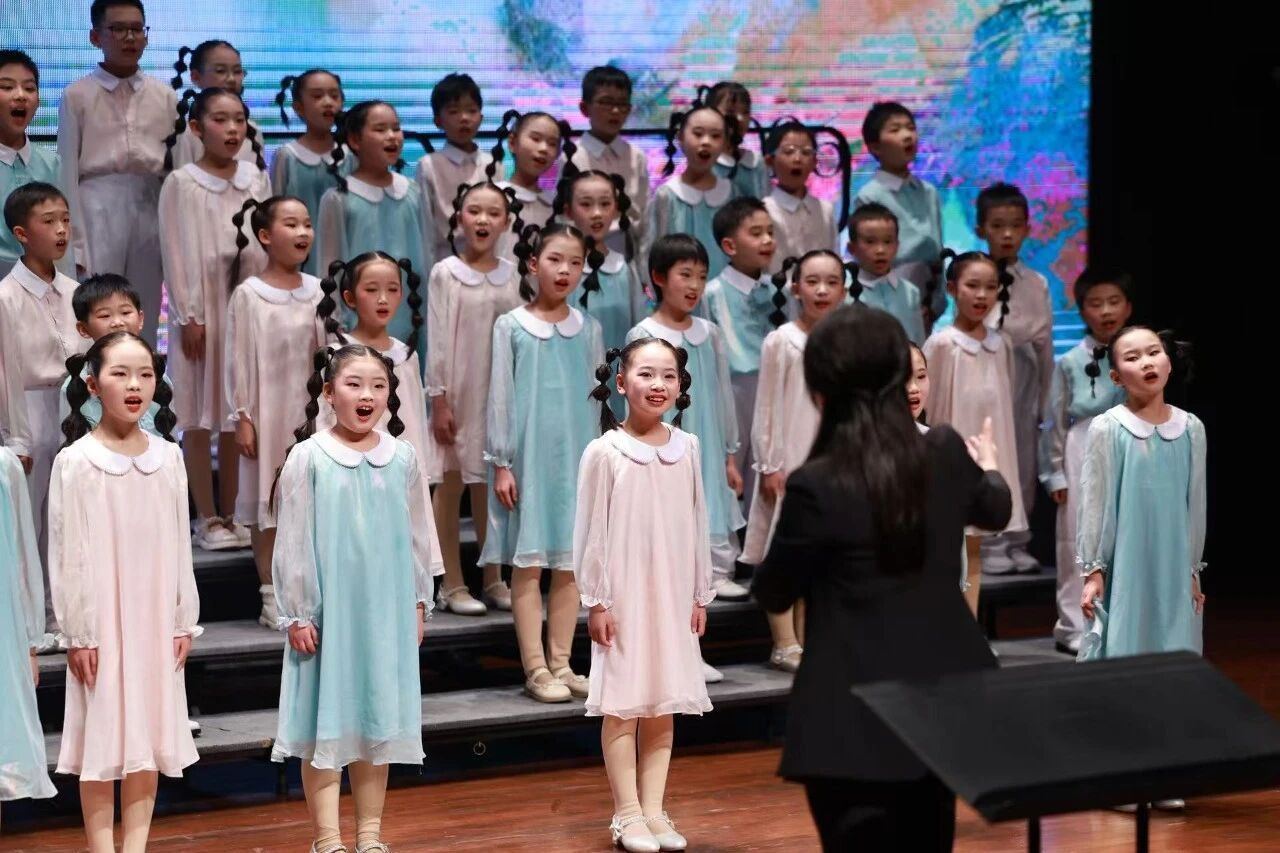 当悠扬的前奏响起,同学们首先带来民族作品《阿鹊鹊》。这首改编自客家传统童谣的曲目,蕴含着山野间的灵动童趣,“阿鹊鹊,飞过沥”的质朴唱词,在孩子们清亮纯净的童声中焕发出新的活力。他们眼神清澈,声部衔接自然流畅,将客家童谣里的童真与山野气息娓娓道来,把传统非遗文化的韵味传递到每位观众心里,让古老的客家声响在音乐厅里绽放新时代的光彩。