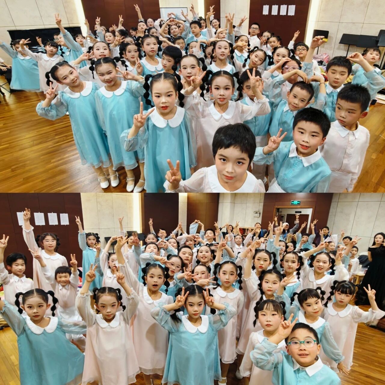 演出前,在陈老师和周老师的悉心指导下,润之合唱团进行了细致入微的排练。从气息发声到情感表达,从歌词咬字到舞台表现,每一个音符、每一个细节都经过反复打磨。孩子们克服了学业与排练的双重压力,用汗水与坚持诠释着对音乐的热爱与执着。