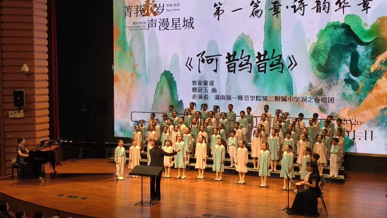 1月11日,长沙音乐厅灯光璀璨,湖南一师二附小润之合唱团的团员们,受邀参加由长沙市菁莪合唱团精心策划的“菁莪歌岁,声满星城”新年音乐会。