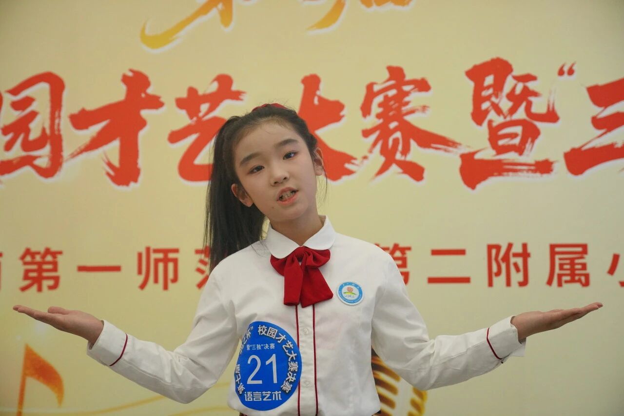 语言表演类节目成为本次大赛的一大亮点,朗诵、演讲、相声等形式精彩纷呈。小选手们身着整齐服装、台风自然,标准的发音、饱满的情感、自然的台风,或激昂澎湃地歌颂家国情怀,或温情脉脉地诉说成长故事,或幽默诙谐地演绎生活趣事。铿锵有力的表达与富有层次的呈现,彰显了新时代二附小少年的自信、责任与担当,字字句句直击人心,传递出语言艺术的独特魅力。