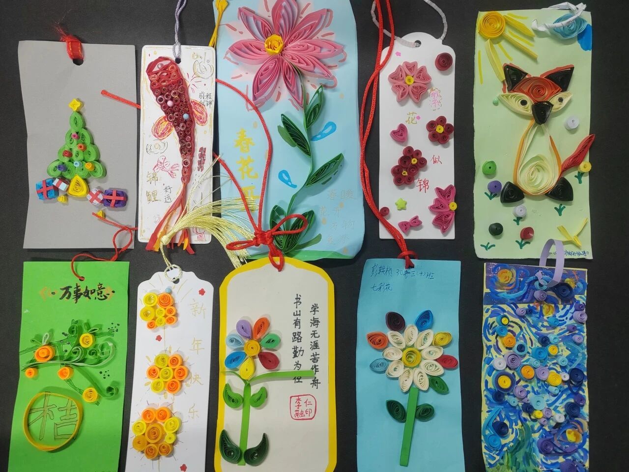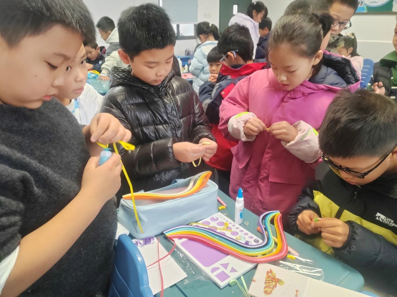 “衍纸书签”创意设计活动则将色彩搭配、造型设计等美育元素融入劳动实践,让学生在创作中同步提升审美素养与动手能力,实现劳动教育与美育的有机统一。