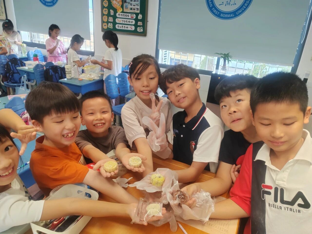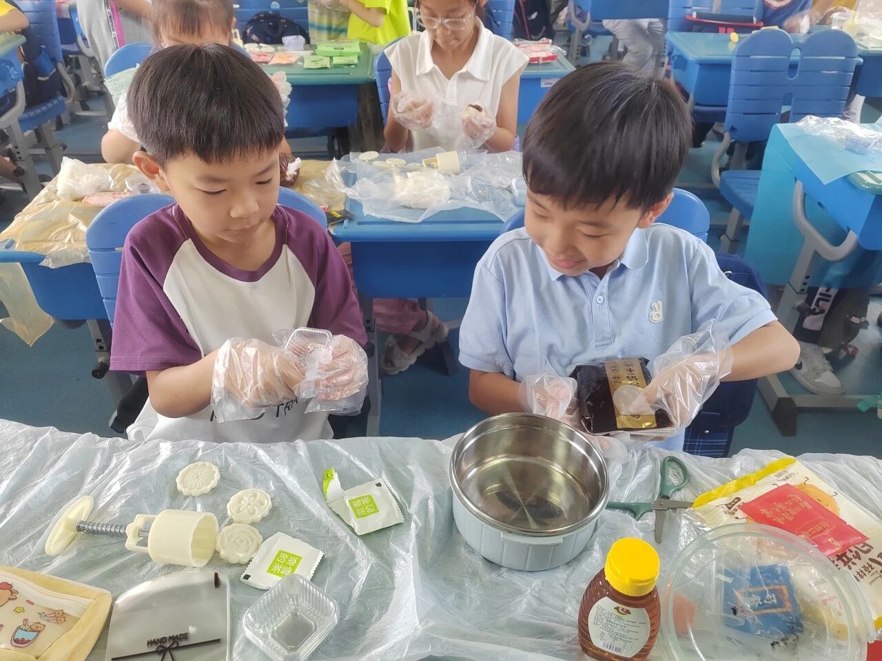 植物催芽培育、扦插实践课程中,学生细心观察植物生长过程,记录生长数据,实现劳动教育与科学探究的深度融合;中秋佳节,师生共同参与月饼制作,揉面、包馅、压模,在动手实践中感受传统节日文化魅力,让劳动成为文化传承的纽带。
