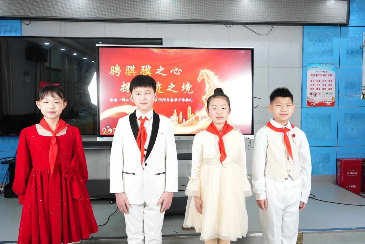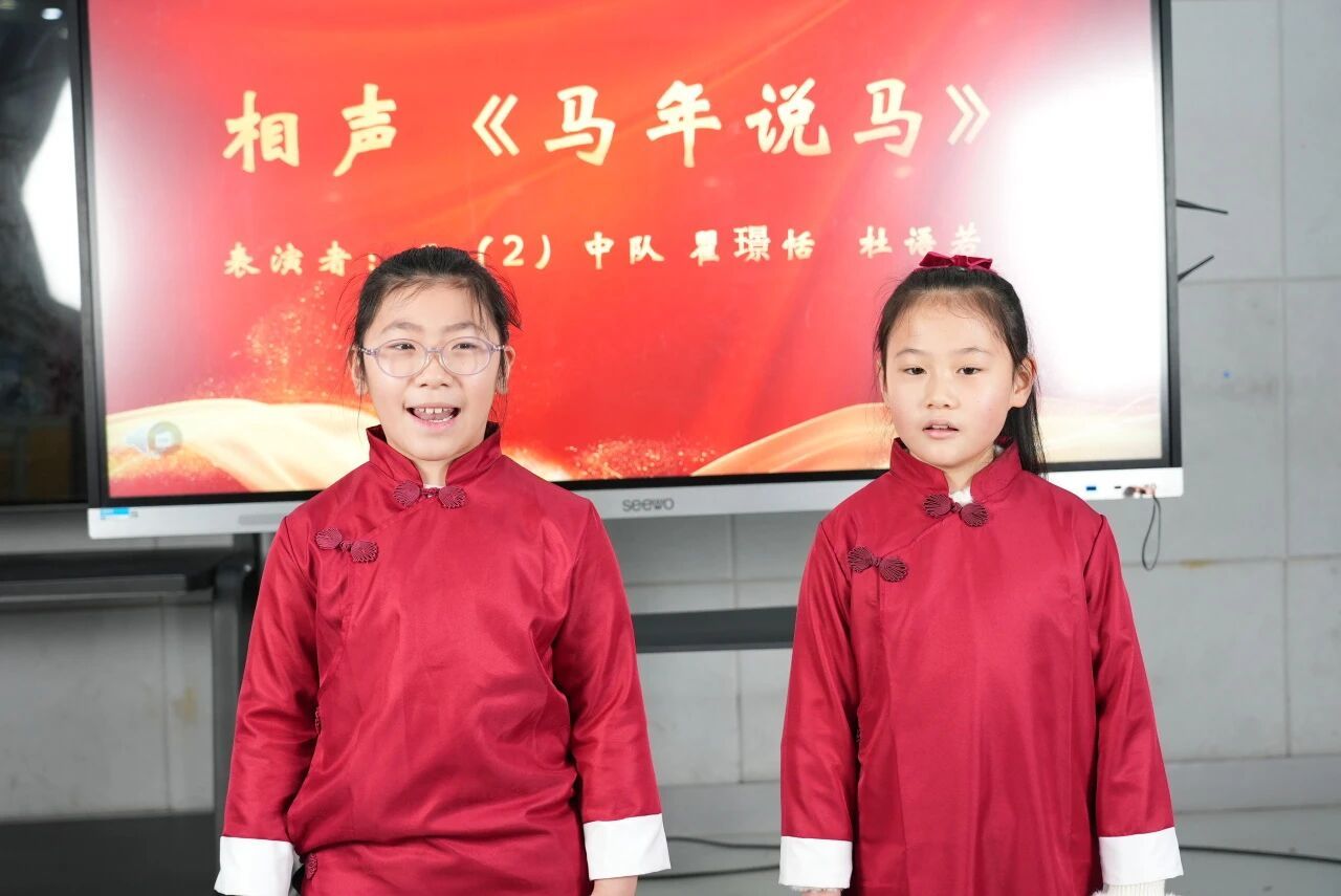 马,作为中华民族千年的伙伴,承载着吉祥、奋进与成功的寓意。湖南一师二附小三(2)中队的两位同学化身相声演员,为大家带来了一段妙趣横生的相声《马年说马》。她们以成语串趣、以生活入戏,在轻松活泼的表演中,讲马、赞马、学马,将积极向上、勤勉笃行的态度融入欢声笑语,让“一马当先”“马到成功”的美好寓意扎根在每一位同学心中。