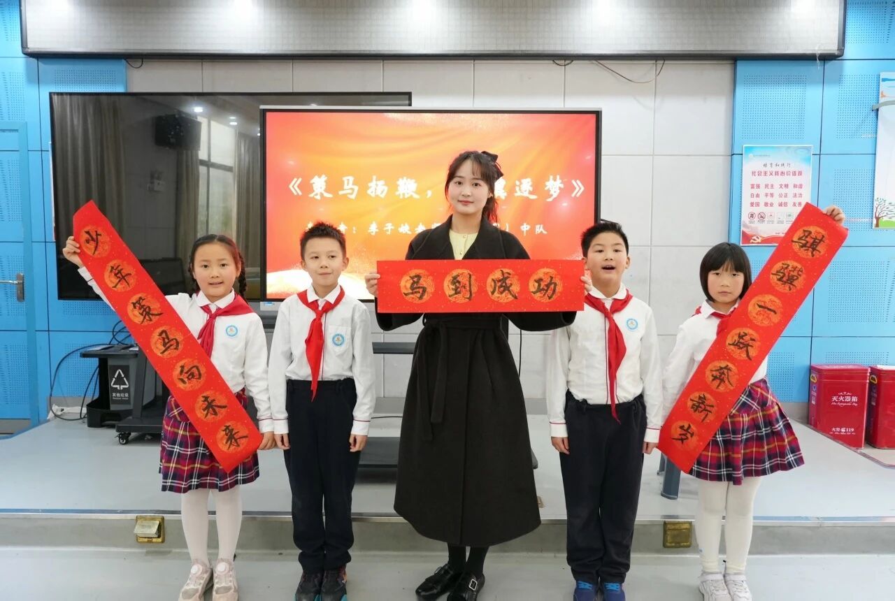 从甲骨文里那匹长鬃飞扬的骏马,到今天简洁有力的“马”字,穿越千年,“马”字始终保持昂首奔跑之姿。湖南一师二附小李子姣老师与二(2)中队的同学们一起追溯汉字演变,讲述生肖传说,解读“骐骥”内涵,让同学们明白:骐骥之心,是勇往直前,是忠诚勤劳,更是坚持不懈!