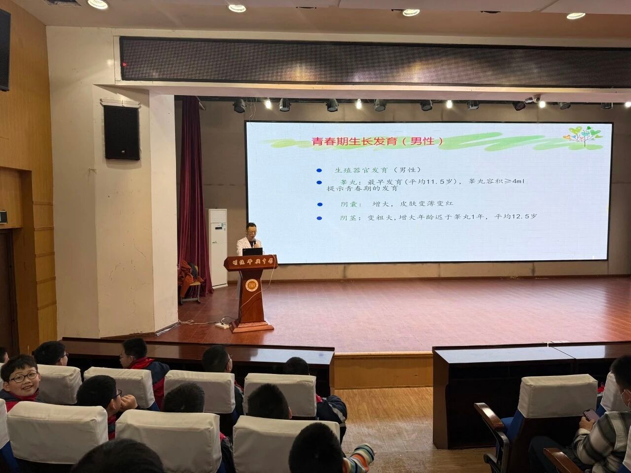 为深入贯彻“健康第一”的教育理念,切实守护学生身心健康成长,帮助五年级学生科学认知青春期身心变化,从容应对成长中的困惑与挑战,增强自我保护意识与健康管理能力,3月30日上午,我校特邀湖南省妇幼保健院专业医疗团队走进校园,开展青春期健康知识专题讲座,以专业与温暖为少年的青春成长保驾护航。